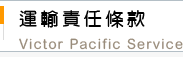 - 本公司代運貨物,衹負承攬運送之責任。所有貨物均交由鐵路、輪船、公路局、航空公司或其他運輸機構承運,貨物在運輸機構運送中之一切責任,均由各該運輸機構負擔。